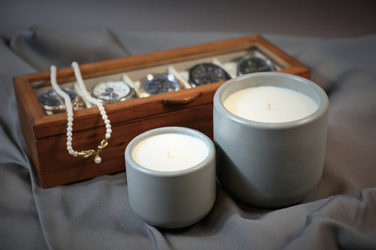 Discover the timeless elegance of the Rochelle Candle Collection, where each piece is hand-poured in Malta using natural soy wax and artisan-made cement jars. Designed to bring warmth and serenity into any space, every candle reflects the balance between craftsmanship and simplicity.